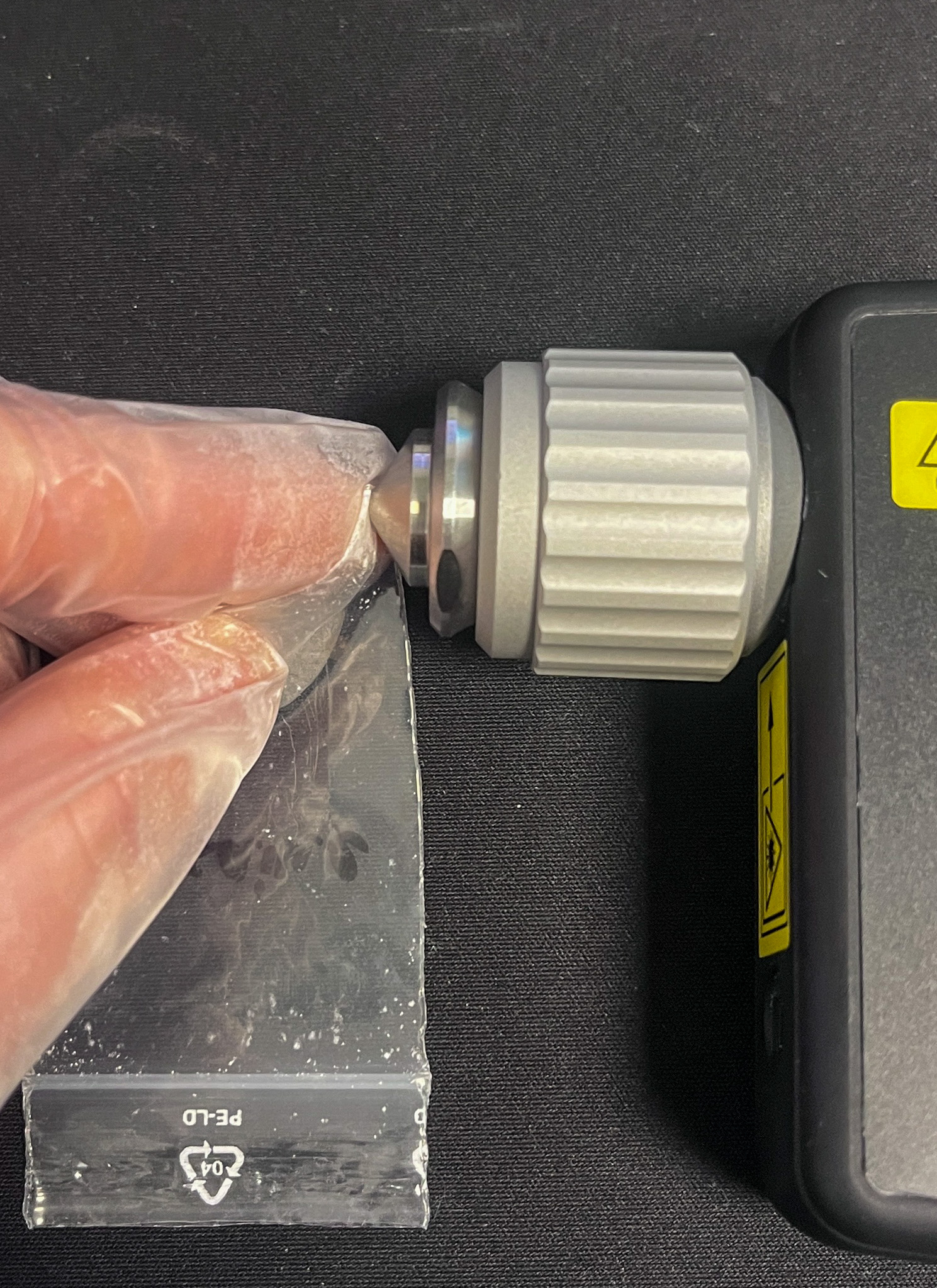 - Fold the Bag Corner: Fold the corner of the bag containing the substance to prevent the instrument’s weight from displacing it from the analyzing beam.