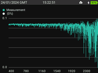 This issue may indicate that the instrument displays an incorrect battery percentage compared to the actual voltage, often linked to a firmware-related problem. For example, a correct battery level shows 100% and approximately 4.20V, while an incorrect level might display 0%, even with a full voltage of around 4.20V.